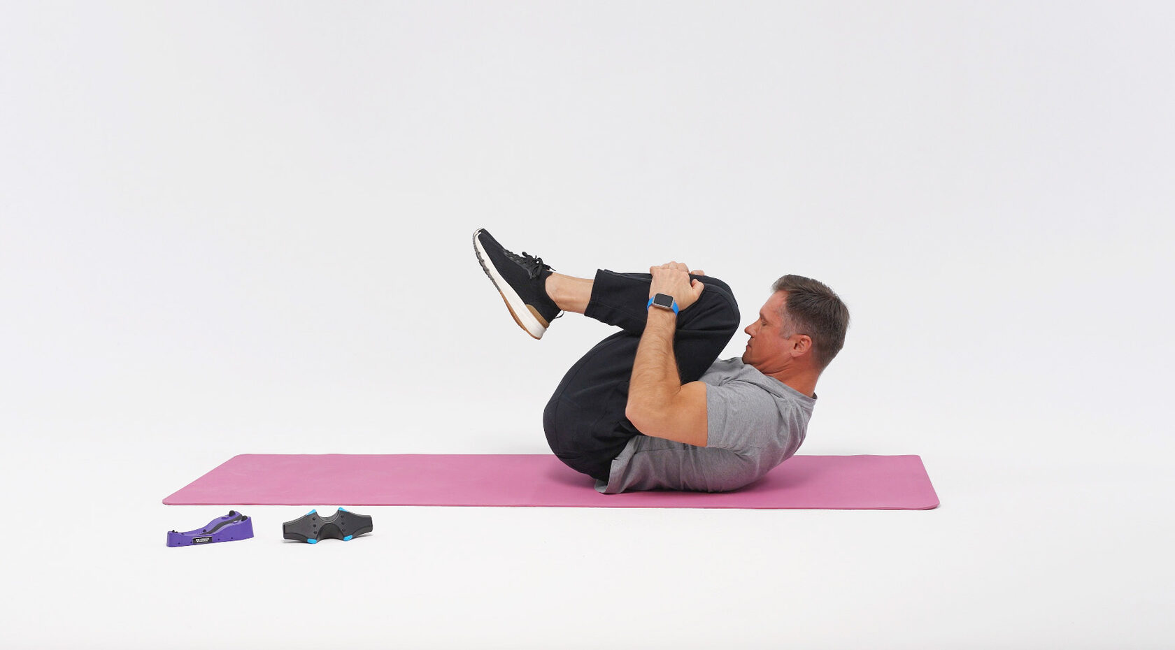 Лягте на спину, согните ноги и плавно подтяните колени к грудной клетке. Удерживайте положение 5–7 секунд, затем медленно опустите ноги. Повторите упражнение 10 раз.