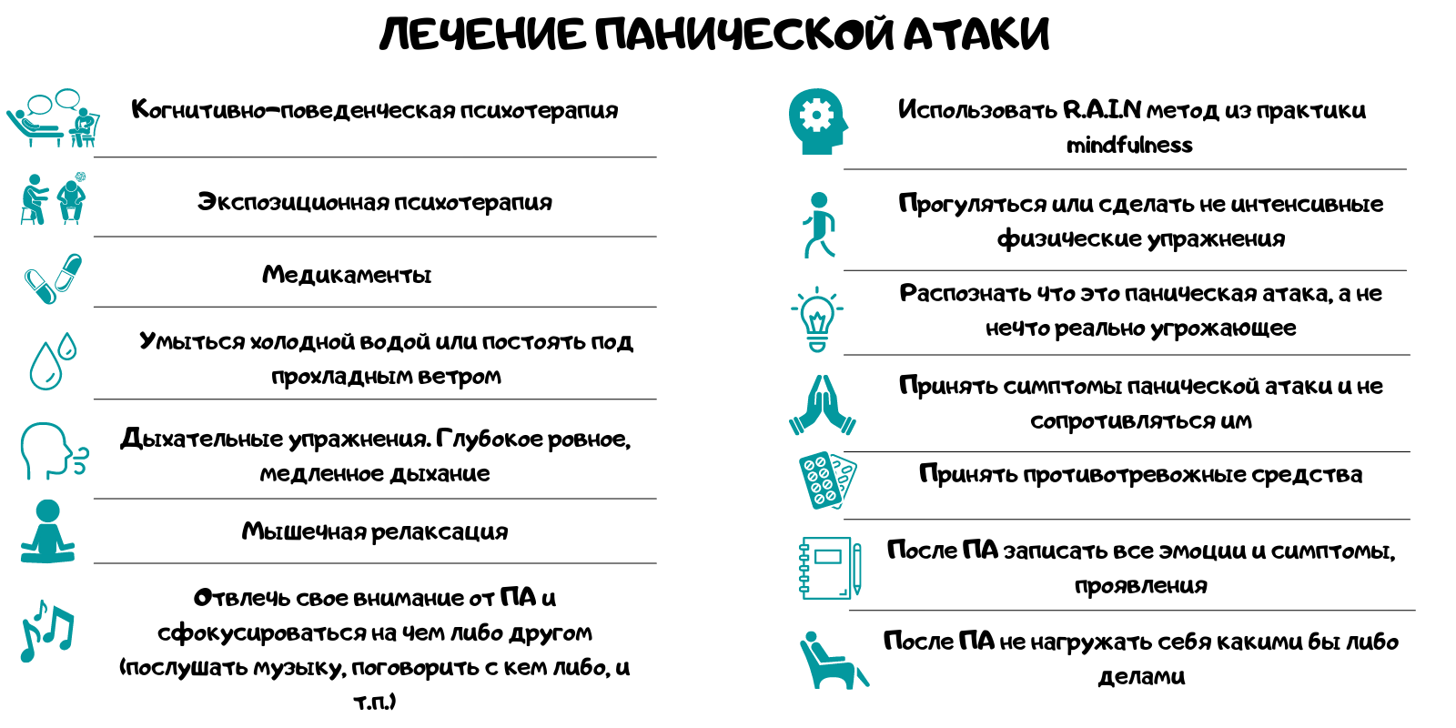 Если паническая атака возникает, очень важно работать как с физическим, так и с душевным здоровьем. Нужно понять, что провоцирует панические атаки. Возможно, стоит поменять образ жизни: уйти с нелюбимой работы, поменьше нервничать, стараться не брать на себя кучу задач, с которыми впоследствии невозможно справиться, избавиться от причин, вызывающих стресс и беспокойство. Всё это лишь усугубит психологическое состояние человека.