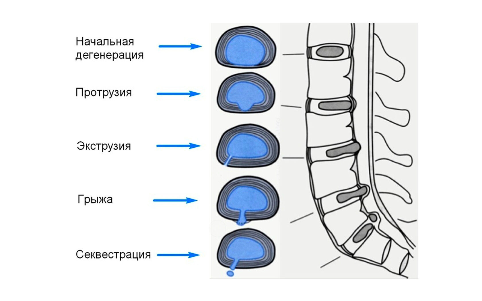 - воспалительный каскад с отёком — организм реагирует как на травму: появляется отёк, боль, воспаление. Иногда подключается аутоиммунный ответ, когда иммунитет ошибочно атакует ткани диска.