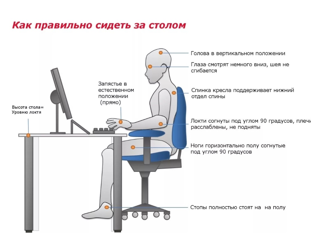 1. Сидите правильно. Спина должна быть прямой, а ноги — полностью стоят на полу.